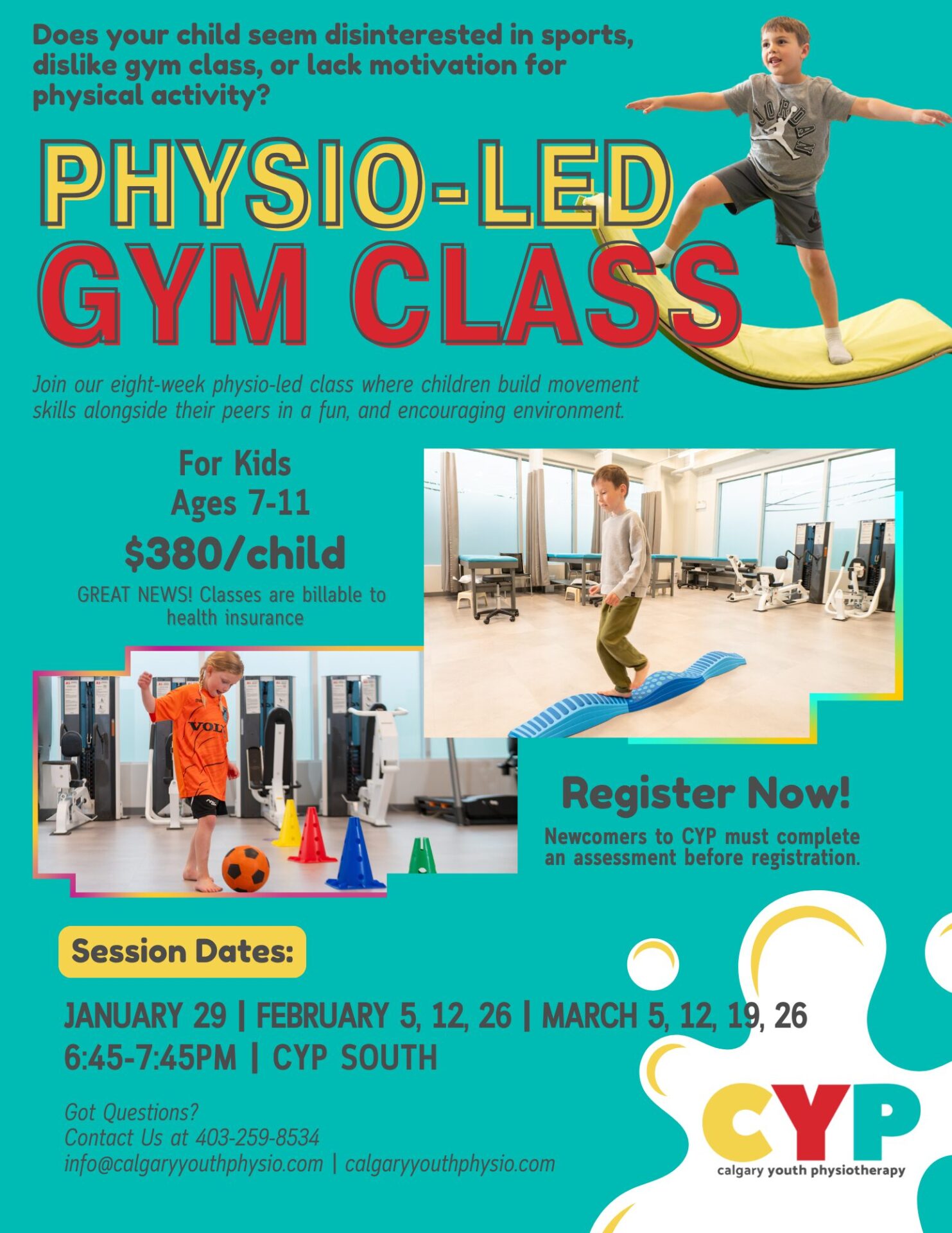 Join our physio-led gym class for kids who struggle with gym or physical activity. Small groups, expert support, and insurance billing available.